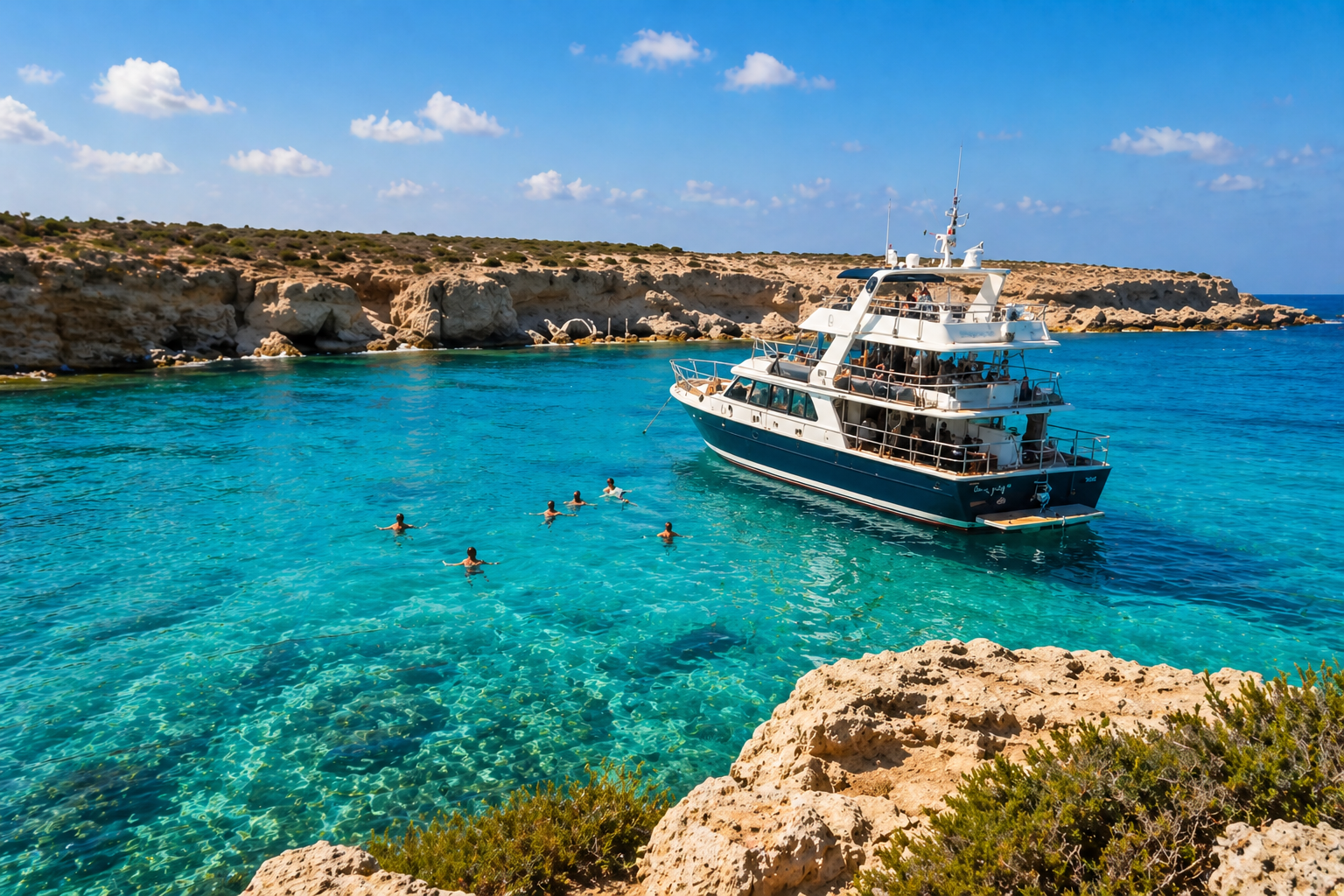 If you’re planning a boat trip in Protaras or Ayia Napa, make sure the Blue Lagoon is part of your experience—it’s a must-see destination and one of the most unforgettable stops along the Cyprus coastline.